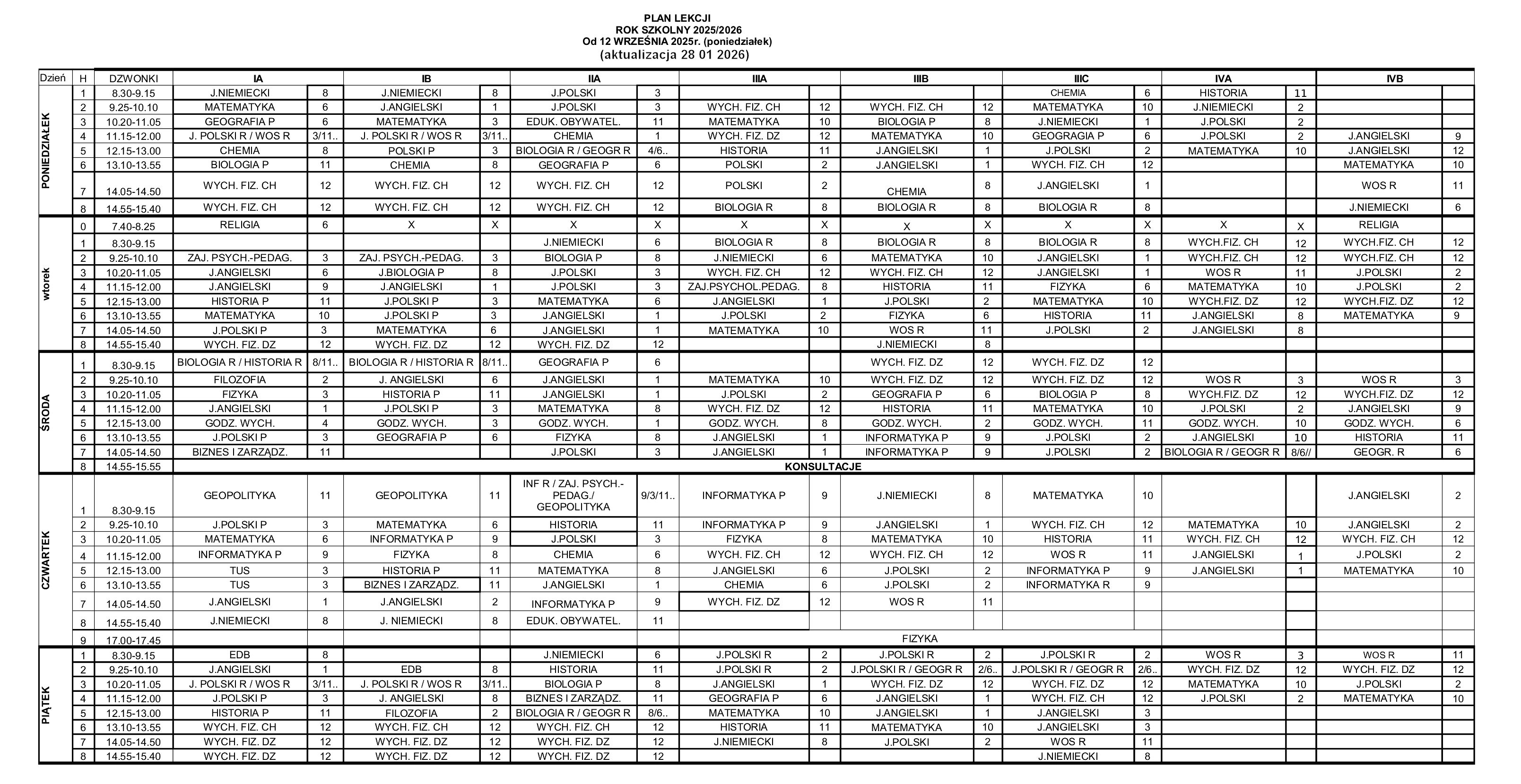 Godziny dostępności nauczycieli dla uczniów i rodziców
