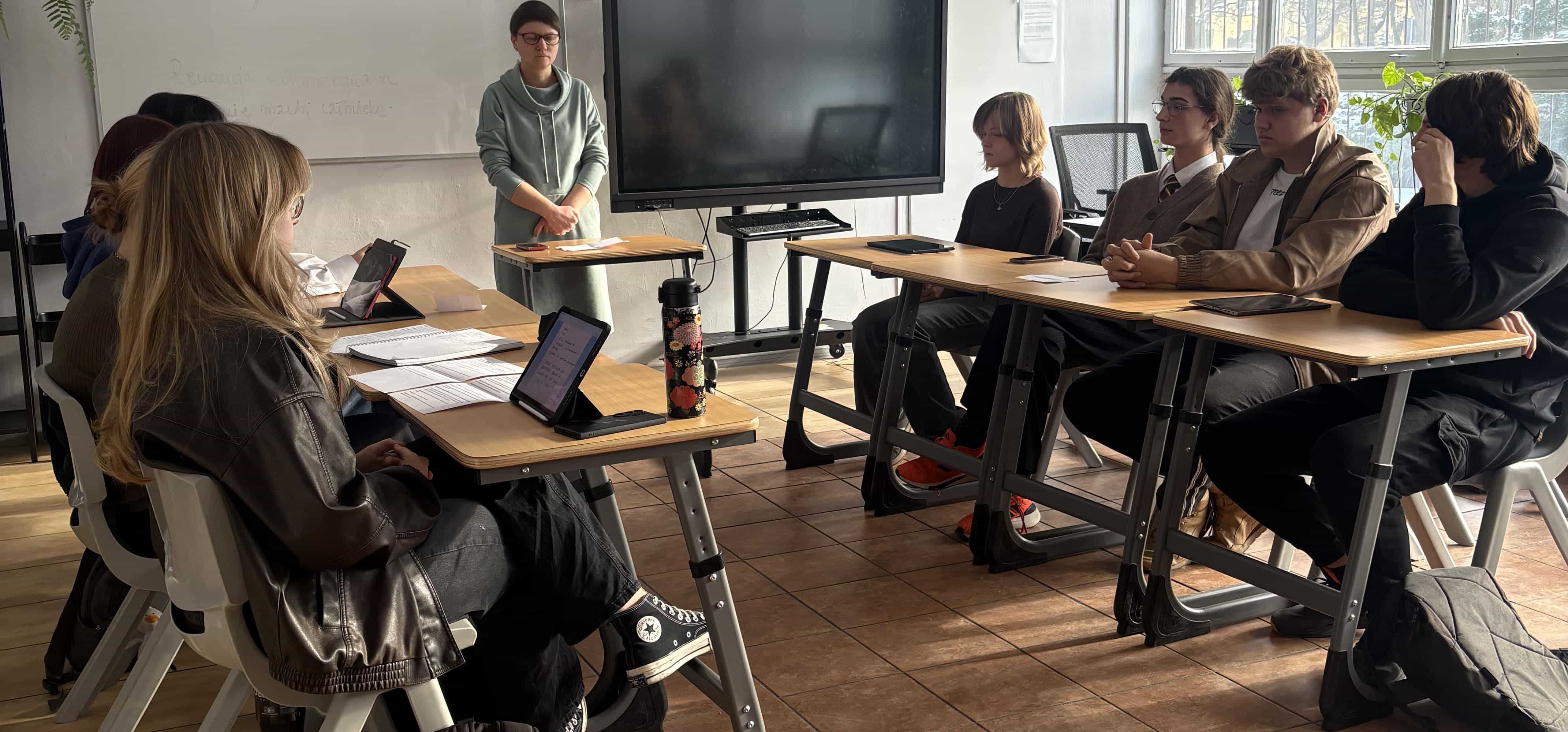 Wczoraj mieliśmy przyjemność gościć Caroline Green, która przyjechała do nas z USA 🇺🇸w ramach współpracy z Polsko-Amerykańską Komisją Fulbrighta. Caroline opowiedziała o życiu w amerykańskiej szkole średniej,