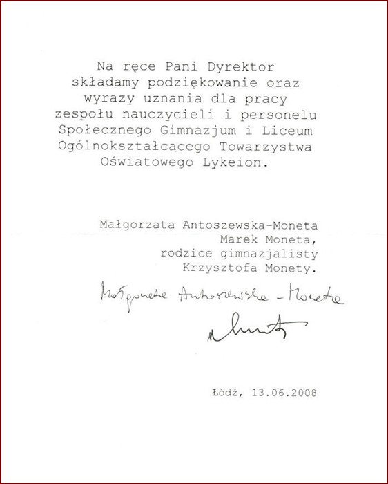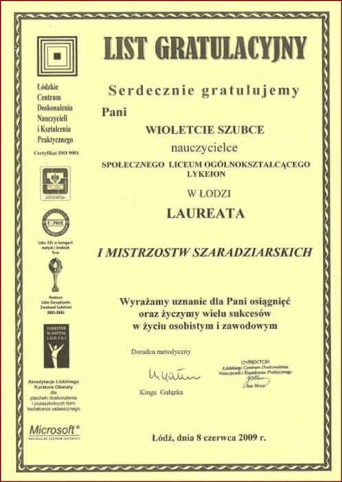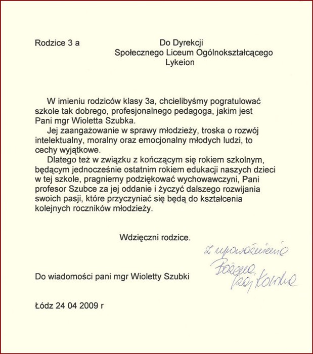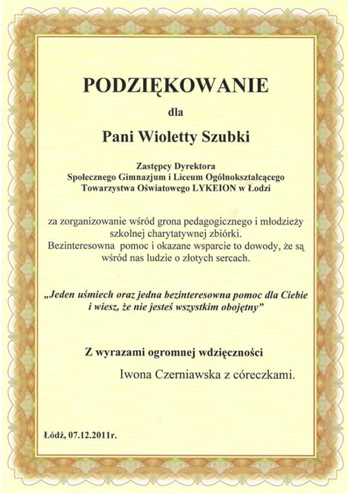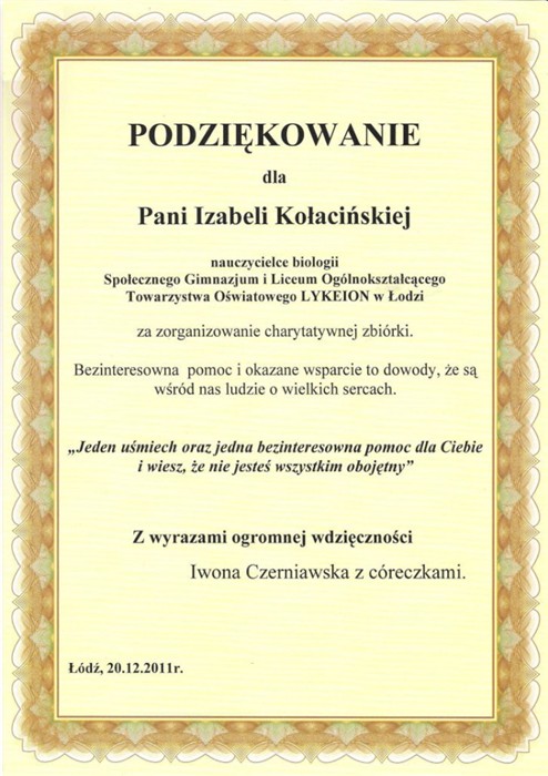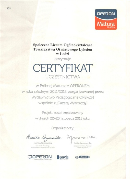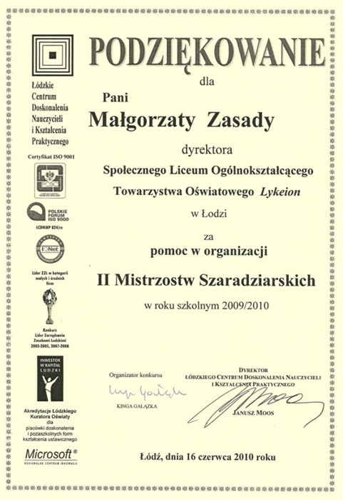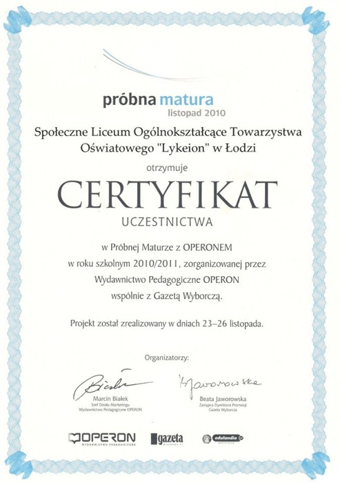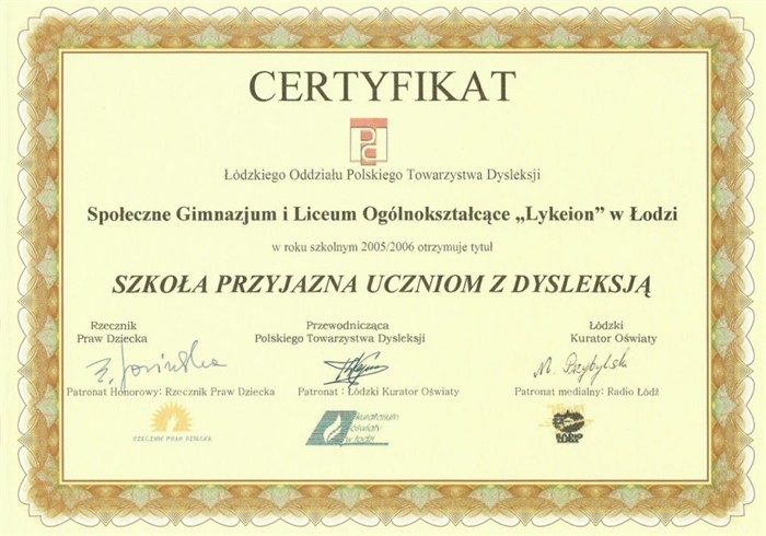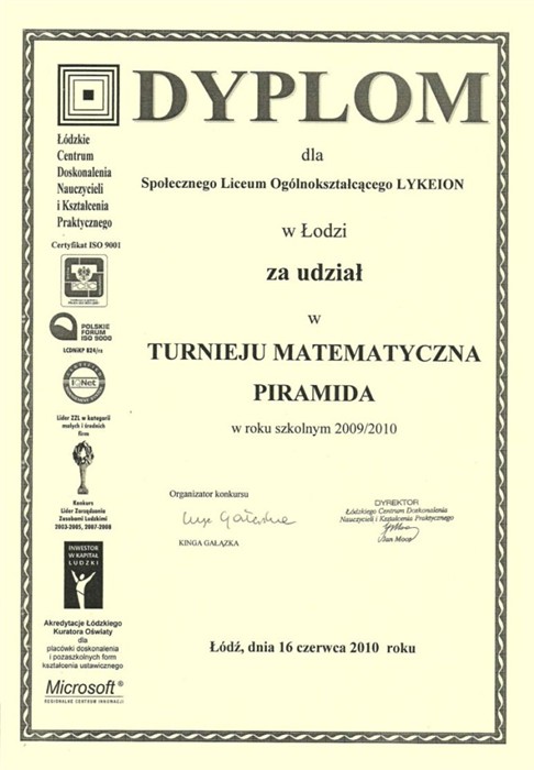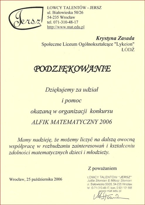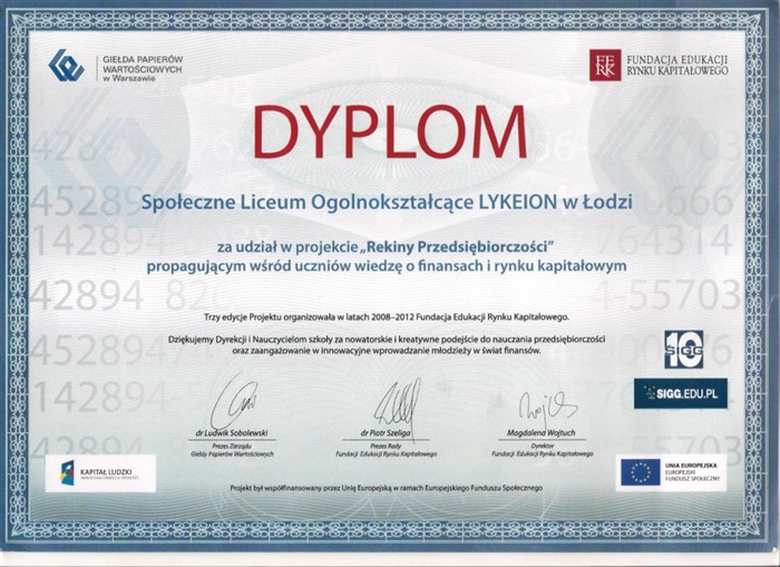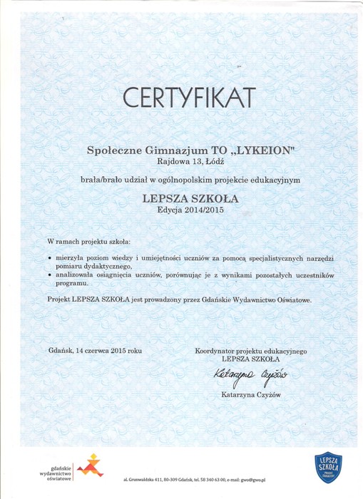 Społecznego Liceum Ogólnokształcącego LYKEION