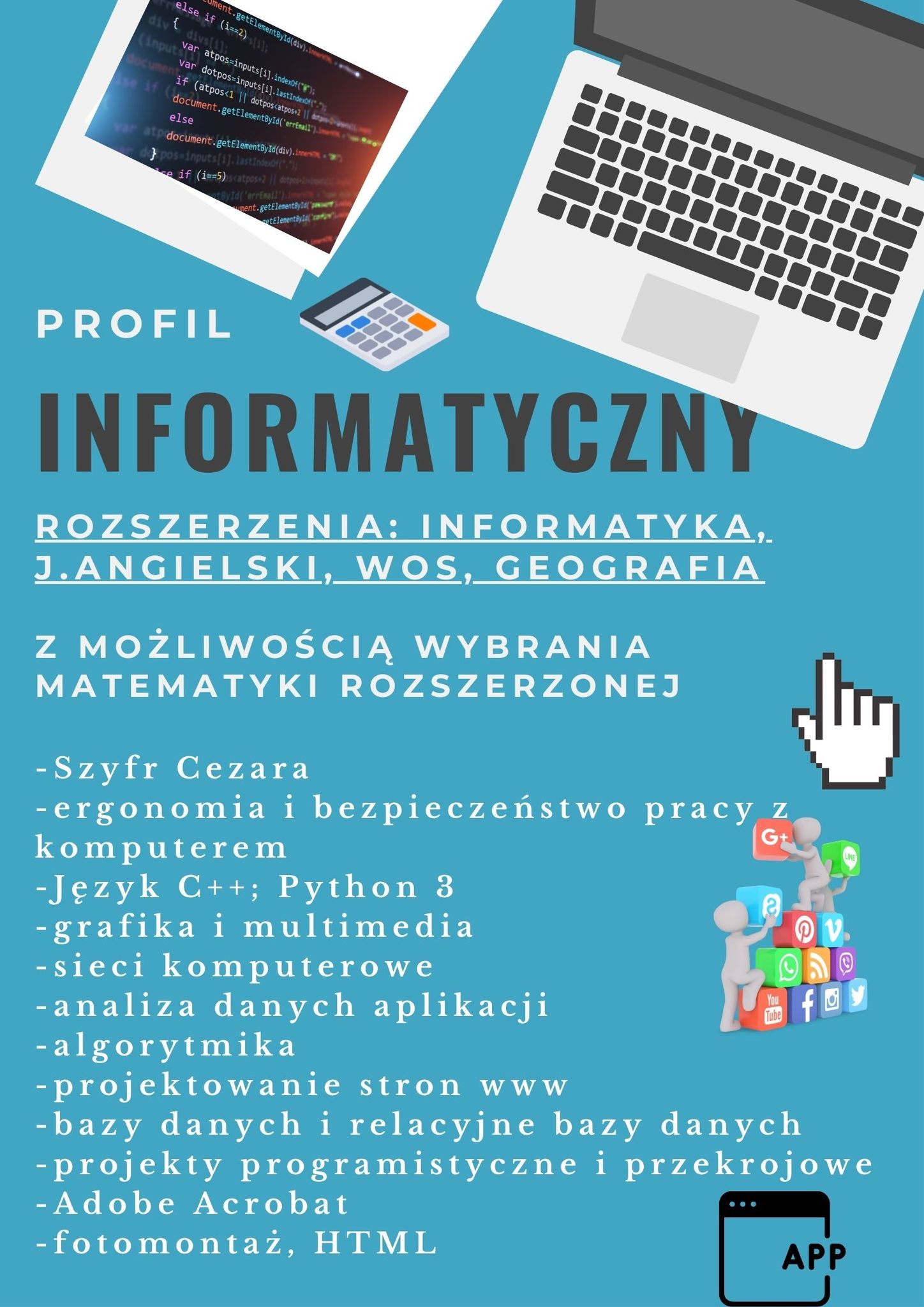 informatyczny (do wyboru: matematyka na poziomie podstawowym lub rozszerzonym),
